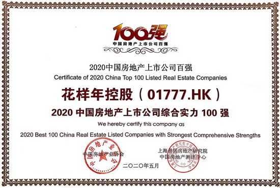 2020年5月26日,由中國房地產業(yè)協(xié)會、中國物業(yè)管理協(xié)會、上海易居房地產研究院中國房地產測評中心聯(lián)合主辦的“2020中國房地產及物業(yè)上市公司測評成果發(fā)布會”在上海?蘇寧寶麗嘉酒店隆重召開?;幽昕毓桑?1777.HK)憑借較強的綜合實力,榮獲“2020中國房地產上市公司綜合實力百強62名”,較去年排名再進4位。該測評自2007年開展至今已歷13年,花樣年控股自2009年上市以來,連年獲此榮譽。同時,花樣年控股旗下彩生活集團也位列“2020物業(yè)服務企業(yè)上市公司十強第7名”。