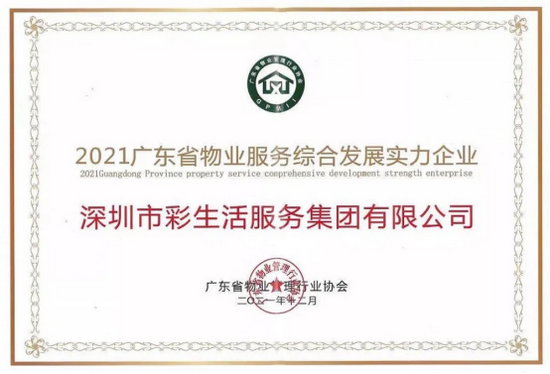 2021年12月15日,在廣東省物業(yè)管理行業(yè)協(xié)會(huì)“第五屆第五次會(huì)員(代表)大會(huì)暨理事(監(jiān)事)會(huì)會(huì)議”及“2021廣東省物業(yè)服務(wù)企業(yè)綜合發(fā)展研究成果發(fā)布會(huì)”上,彩生活憑借綜合實(shí)力和業(yè)界口碑,榮獲“2021廣東省物業(yè)服務(wù)綜合發(fā)展實(shí)力企業(yè)”、“2021年度廣東省物業(yè)管理行業(yè)協(xié)會(huì)優(yōu)秀會(huì)員”、“2021大灣區(qū)物業(yè)服務(wù)品牌企業(yè)”三項(xiàng)獎(jiǎng)項(xiàng)。
